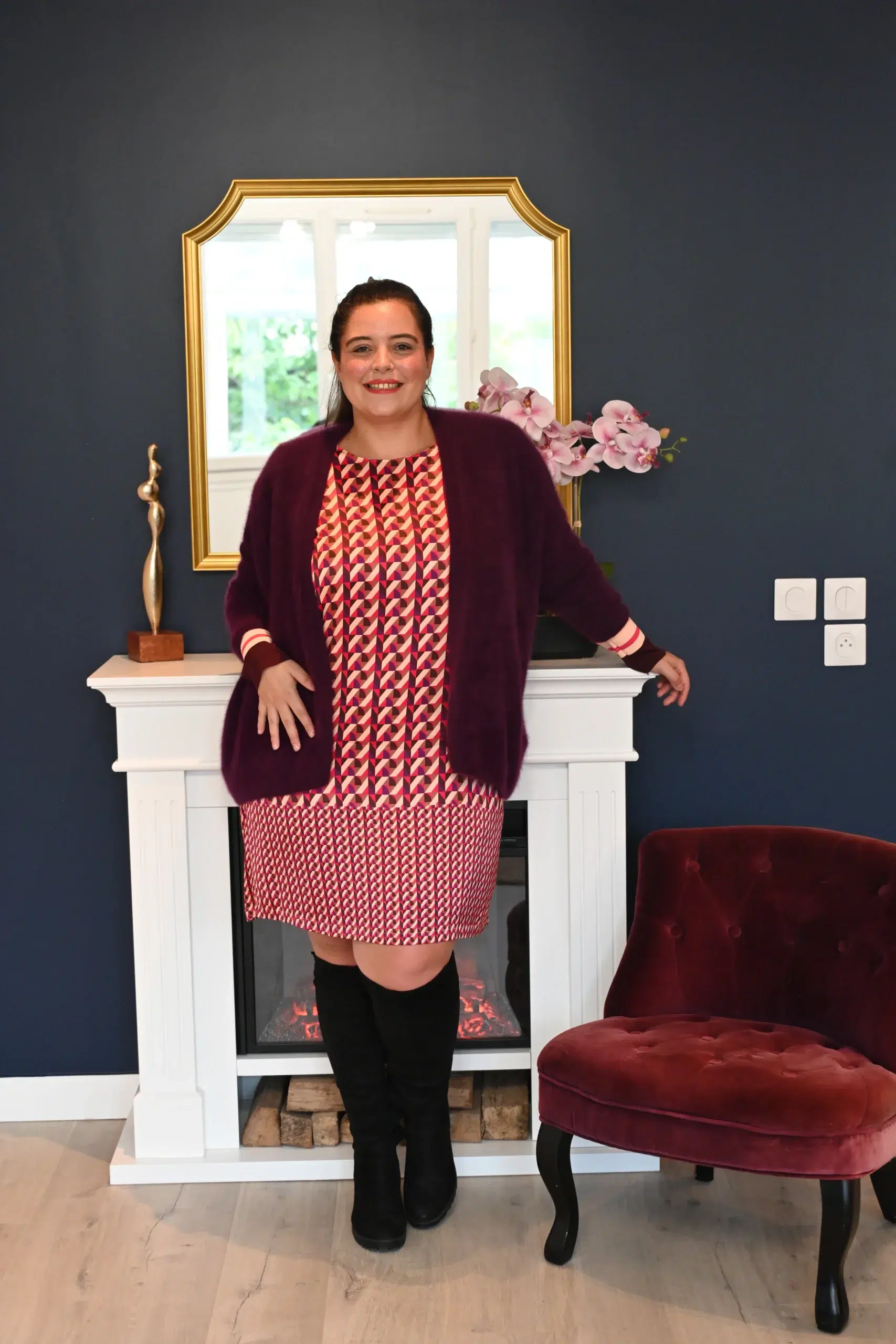 Vous allez adorer cette robe fantaisie pour sa douceur et son confort. N’hésitez pas à la porter avec un gilet en cachemire, comme sur la photo, ou à l’associer à une jolie veste pour un look élégant et féminin.