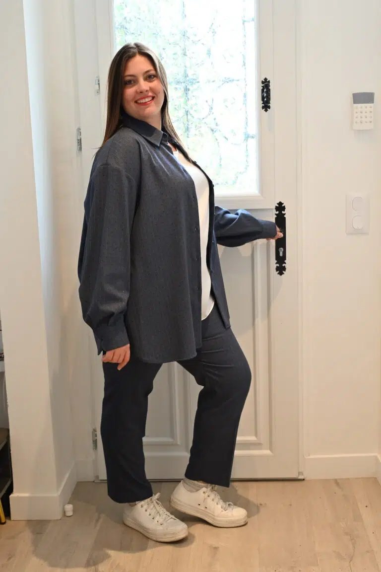 Cette chemise se marie facilement avec différents types de pantalons, que ce soit un pantalon assorti, un jean ou un pantalon habillé.