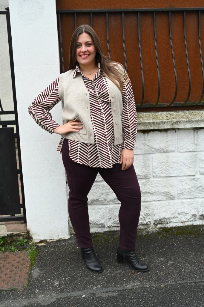 Cette chemise est de la marque Marina Rinaldi, reconnue pour ses vêtements de qualité.