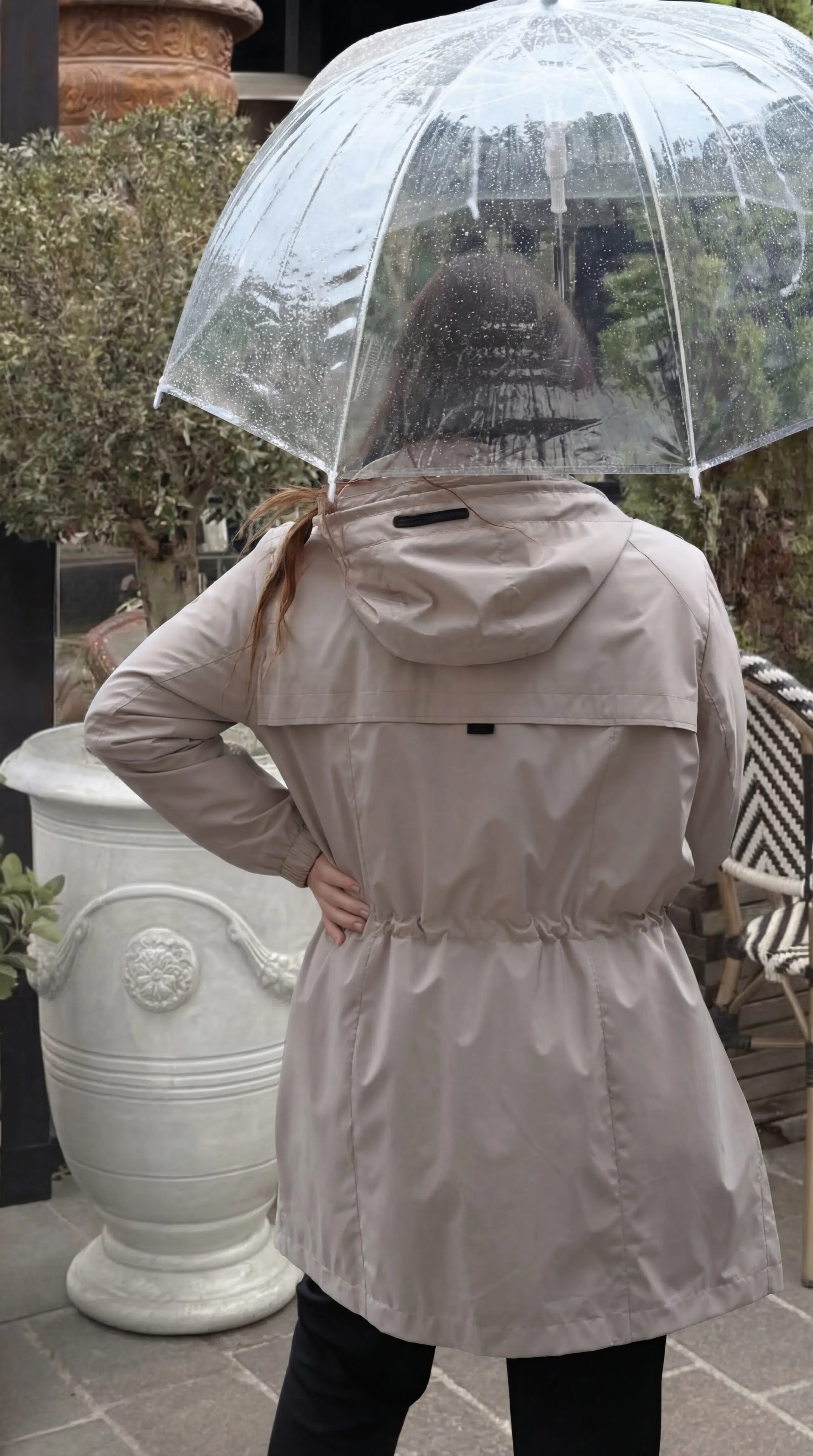 Ce imper léger est conçu pour vous accompagner lors des pluies printanières. Sa coupe moderne et son coulissé à la taille vous permettent d'ajuster la silhouette selon vos envies. La capuche amovible est un atout supplémentaire, vous offrant la flexibilité nécessaire pour changer de style selon la météo.